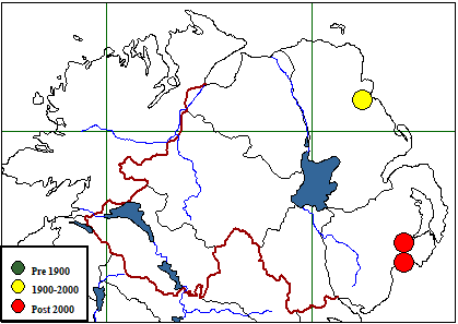| Habitat (where recorded) & number of records: Fen: valley mire, basic (1) Flush and spring: basic (1) Woodland and scrub (1) |