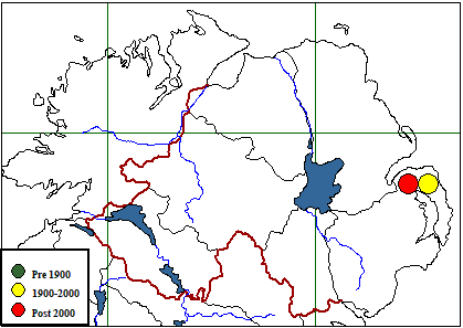 | Habitat (where recorded) & number of records: Woodland: broadleaved, semi-natural (1) Woodland: mixed, plantation (1) |