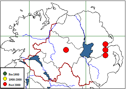 | Habitat (where recorded) & number of records: Bog: raised (1) Woodland: broadleaved, semi-natural (1) |