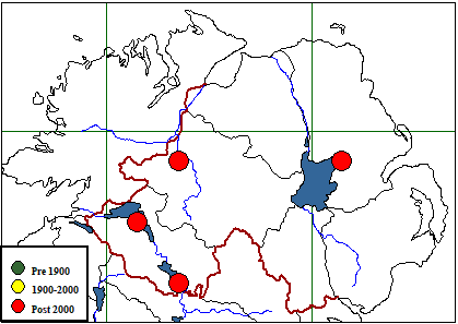 | Habitat (where recorded) & number of records: Woodland: broadleaved (1) Woodland: mixed, plantation (1) |