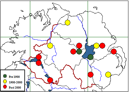 | Associated Species (where recorded) & number of records: Alnus glutinosa (7) Alnus (2) |