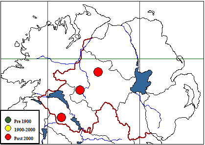 | Habitat (where recorded) & number of records: Woodland: broadleaved, semi-natural (2) Built up area, domestic (1) Neutral grassland: semi-improved (1) Parkland and scattered trees (1) Woodland (1) Woodland: broadleaved (1) Woodland: coniferous, plantation (1) Woodland: mixed (1) |