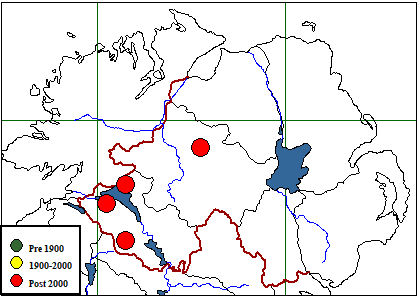 | Associated Species (where recorded) & number of records: Pseudotsuga menziesii (2) Alnus glutinosa (1) Sambucus nigra (1) Ulex (1) |