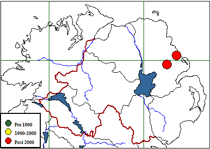 | Habitat (where recorded) & number of records: Acid grassland (1) Artifical rock exposure and waste: quarry (1) |