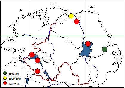 | Habitat (where recorded) & number of records: Woodland: broadleaved, semi-natural (3) Woodland: mixed (2) Boundaries: defunct hedge (1) Marsh/marshy grassland (1) Neutral grassland: semi-improved (1) Woodland (1) Woodland and scrub (1) Woodland: broadleaved (1) Woodland: mixed, plantation (1) |