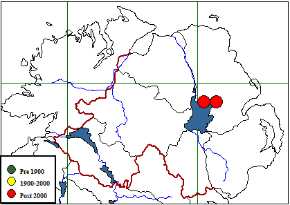 | Habitat (where recorded) & number of records: Woodland: mixed, plantation (2) |