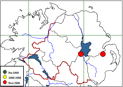 | Habitat (where recorded) & number of records: Bog: wet modified (1) Woodland: broadleaved, semi-natural (1) |