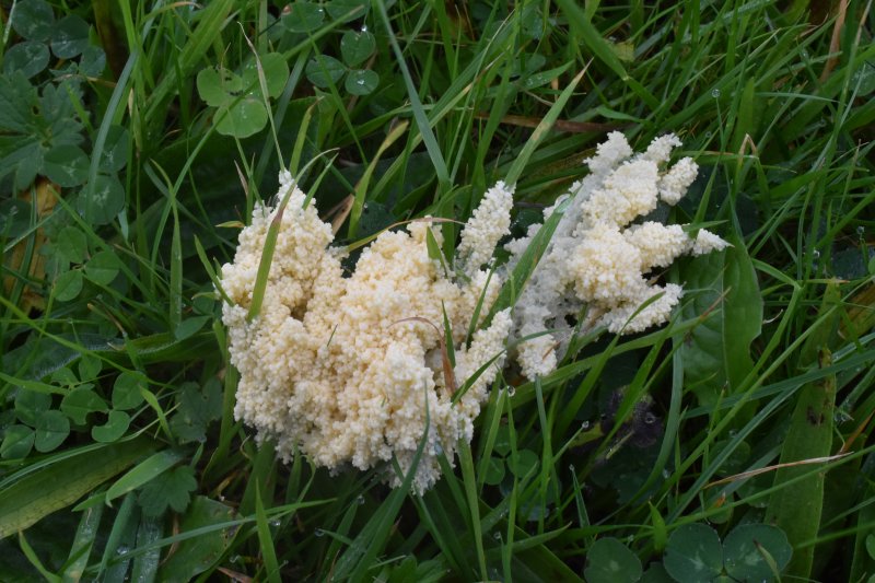 Didymium mucilago Dog Vomit Slime Mould Mucilago crustacea var. crustacea Mucilago crustacea var. dictyospora Mucilago spongiosa Mucor spongiosus Reticularia alba Spumaria alba |