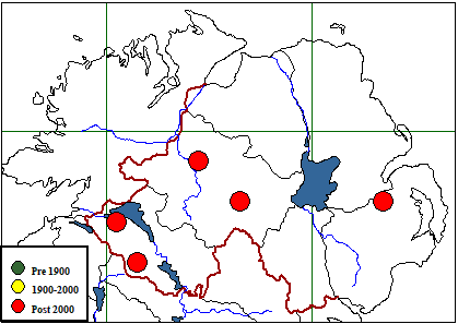 | Associated Species (where recorded) & number of records: Luzula sylvatica (5) Juncus (2) Juncus conglomeratus (2) Luzula (1) Luzula campestris (1) |