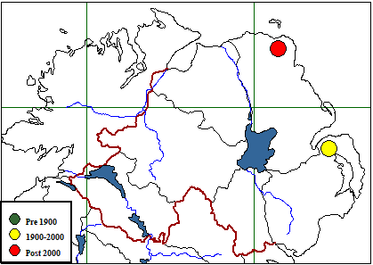 | Habitat (where recorded) & number of records: Woodland and scrub (1) Woodland: coniferous, plantation (1) |